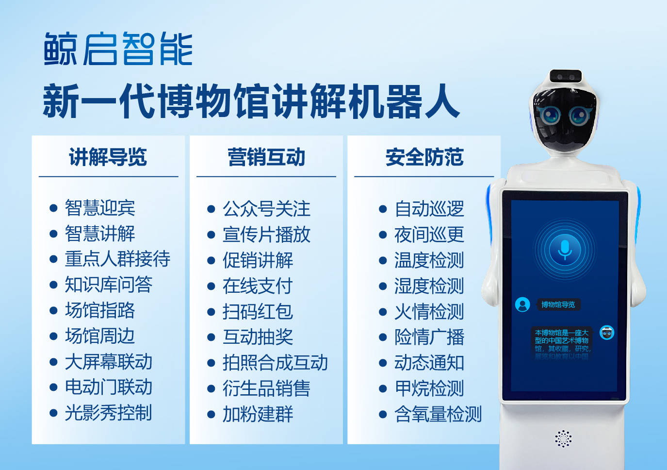 鲸启智能新一代博物馆讲解导览机器人功能介绍